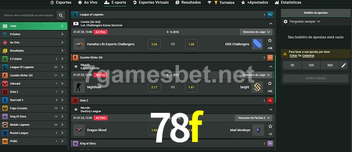 O 78f oferece uma grande seleção de opções de apostas em e-sports com probabilidades competitivas
